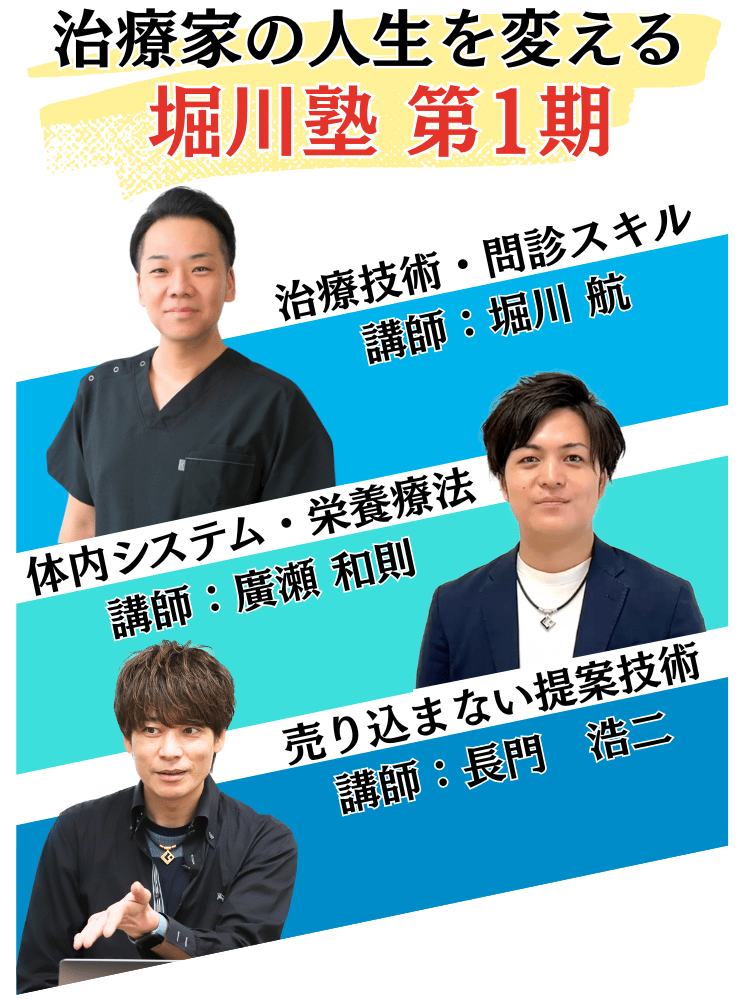 堀川塾を信じて受講した先生には、今までと異なる治療家人生を歩んでもらう用意がある。