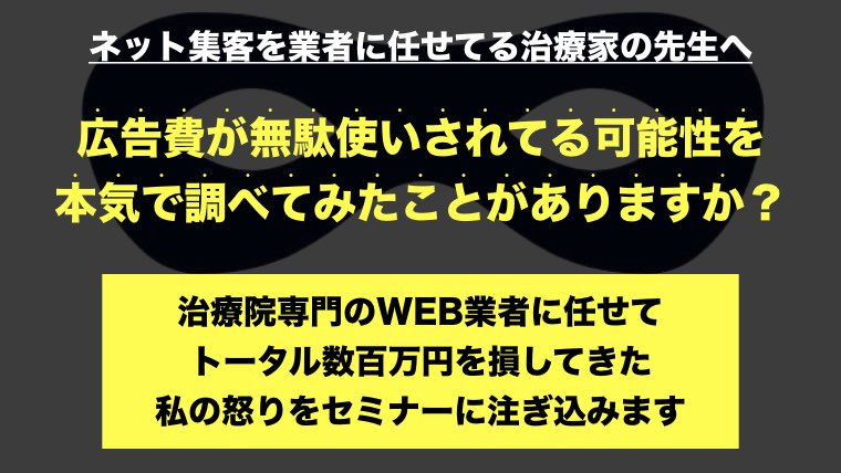 多くの治療家の先生はウェブの知識が全くないので広告屋さんからすると「いいカモ」。(広告屋の共通認識)